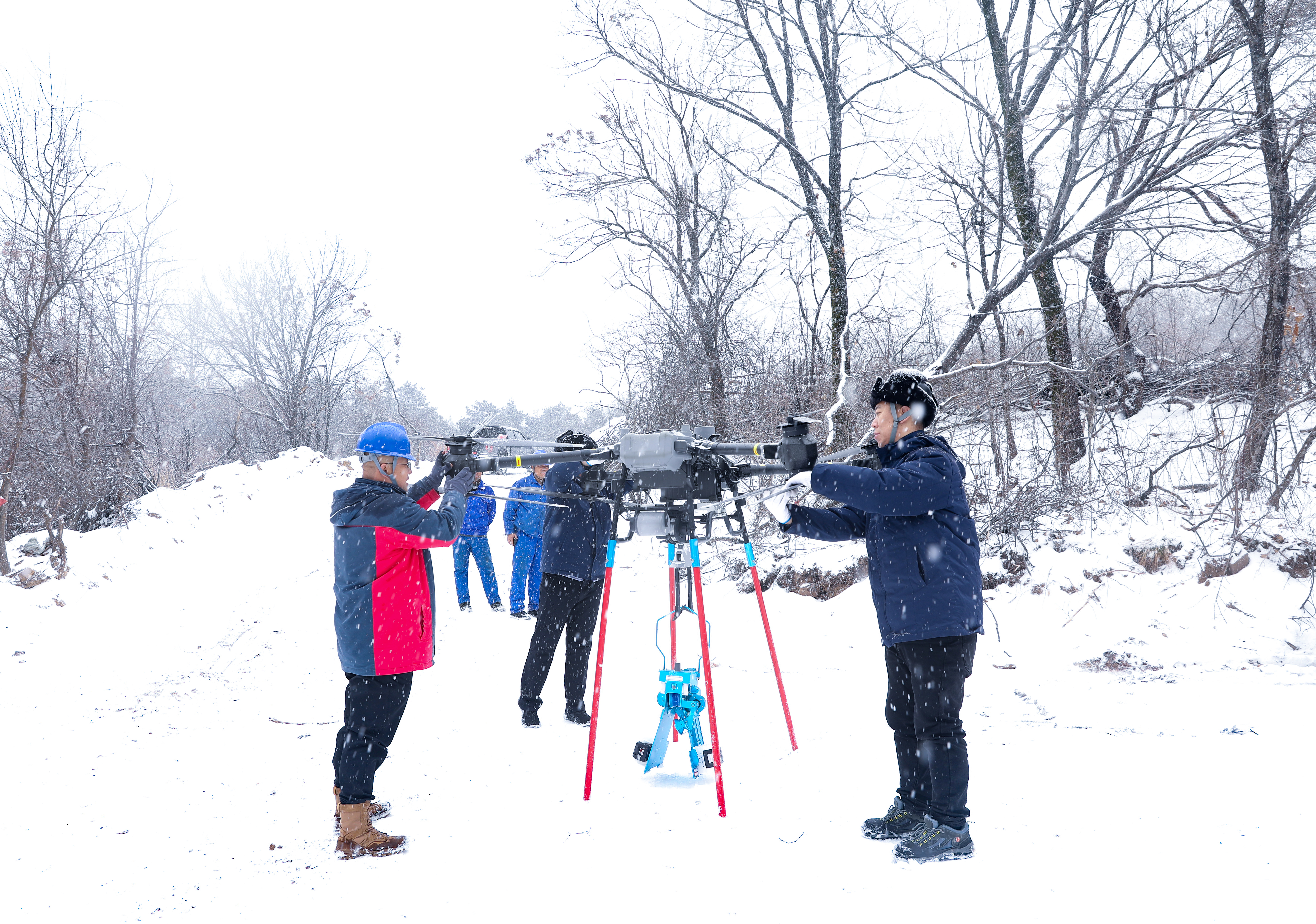防冰,是一場與時間的賽跑。盡管當(dāng)前積雪尚未達到緊急破冰程度,但在金剛嶺這樣的險峻地段,一場立體化防冰演練已在風(fēng)雪中展開。運維人員采用“人巡+機巡+機器人協(xié)同除冰”模式,同步開展特巡與實戰(zhàn)化除冰裝備演練。